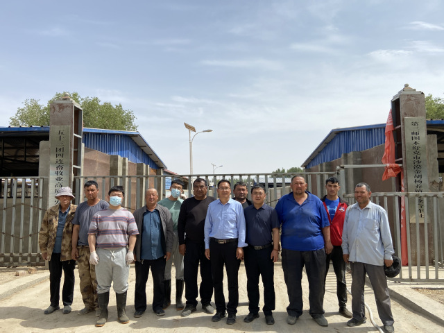 近日,yl23411永利人畜共患病致病机制与防控研究团队、牛羊高效养殖与疫病防控综合技术科技特派员服务团队孙志华老师、赵天艺博士一行深入南疆图木舒克市五十三团,与驻五十三团四连“访惠聚”工作队一道对辖区内的牛羊养殖企业、合作社以及散养户进行调研及现场指导。团队查看了当地养殖模式、饲养管理、繁殖育种、免疫程序、疾病防治等情况,提出科学养殖的方案和建议。