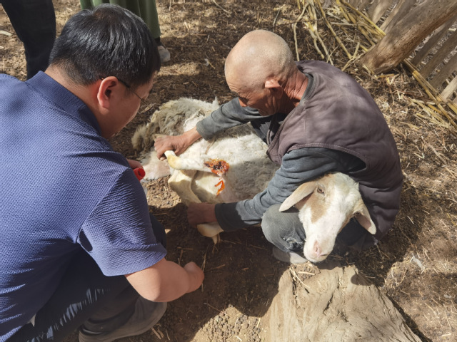 此外,团队一行对附近连队养殖合作社、养殖户进行了走访调研,对牛羊的饲养管理、过量量棉壳饲喂、肉羊呼吸道疾病防控等问题进行了技术指导,孙志华老师现场对部分羊病进行了诊断治疗,受到海力力、热合曼江等农牧民的热情欢迎。