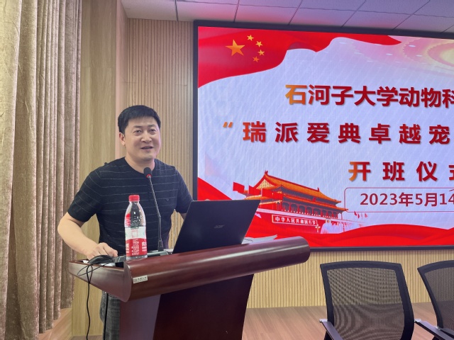 随后,公司优秀员工、瑞派爱典动物医院技术总监石刚进行了精彩发言,石总监结合自己的求学道路向同学们讲述了如何才能成为一名优秀的宠物医师,并鼓励同学们珍惜青春时光,珍惜学习机会,扎实学习专业本领,发挥聪明才智,早日成为新时代兽医合格人才。