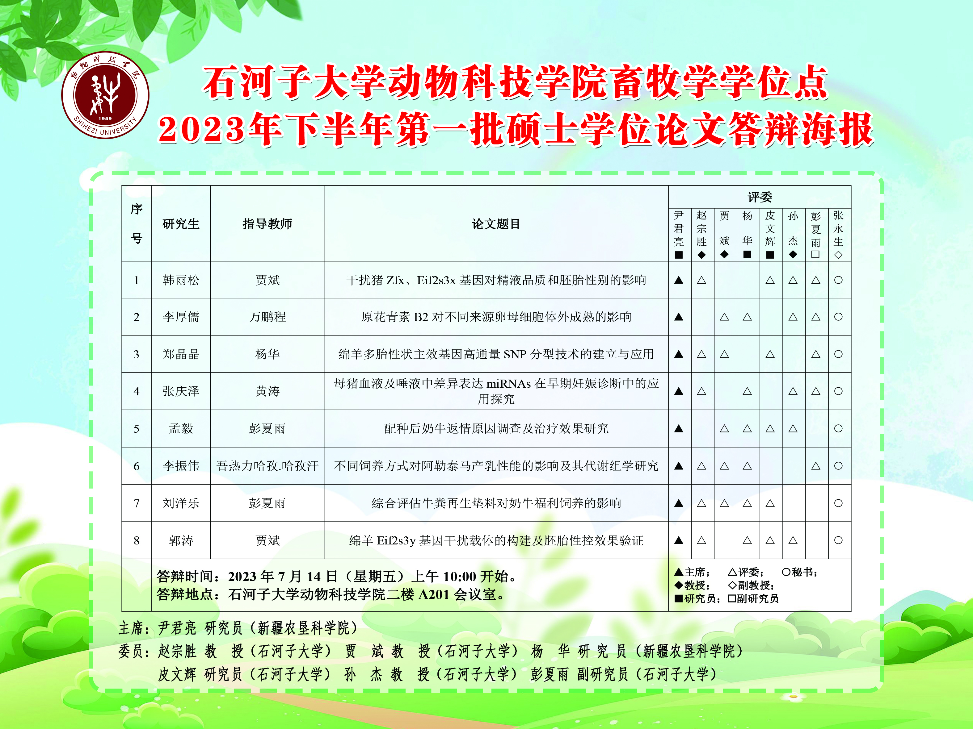 yl23411永利2023年第三批畜牧专硕毕业研究生学位论文答辩海报