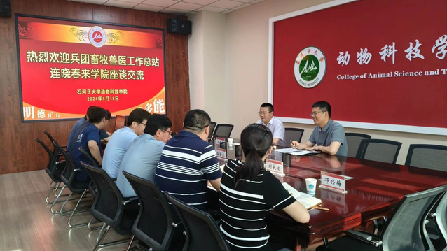 5月18日,兵团畜牧兽医工作总站的专家连晓春先生应邀来到公司,就畜牧兽医领域的最新发展动态、科研合作及人才培养等议题进行座谈交流。本次会议在第一会议室召开,由公司党委书记胡昌娃主持,副经理盛金良、动医系主任刘良波等多位教师参与。