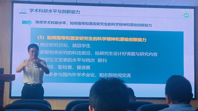 胡昌娃书记做了题为《涵养高尚师德,潜心立德树人》的报告,对导师职业道德规范进行了培训。张辉经理从《科研能力与研究生指导》方面,做了关于导师如何提升学术科研水平和研究生指导能力,如何指导和激发研究生的科学精神和原始创新能力,培养出优秀研究生的报告,进行了导师胜任力提升培训。赵宗胜副经理则从研究生教育政策解读公司产品工作,领学全国研究生教育会议精神及《学位法》,解读学位与研究生教育政策法规、制度规定等。