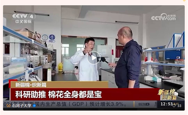 近日,央视中文国际频道播出的“新疆棉·织新篇”节目中,对yl23411永利官网饲草料综合利用团队进行了采访报道。在节目中,团队负责人孙新文教授介绍了团队利用棉花秸秆制作微贮饲料,让棉花秸秆“变废为宝”的故事。