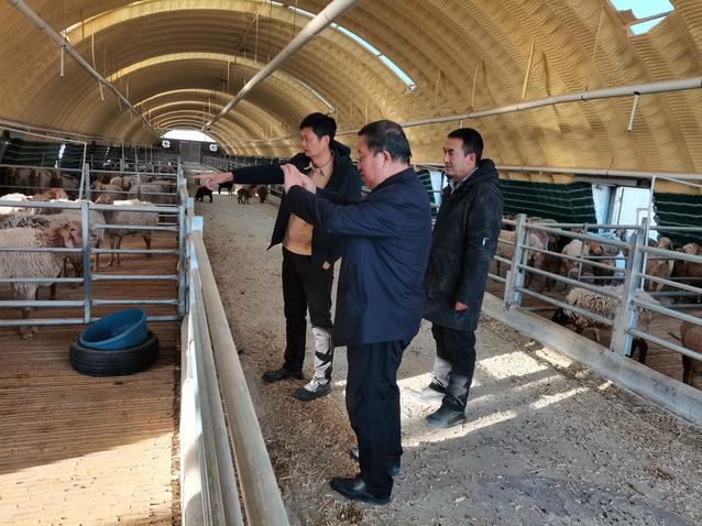 在对皮山农场养殖专业合作社调研过程中,向春和介绍了当地畜牧业发展情况,详细介绍了皮山红羊扩繁养殖基地经过多年的繁育,已成功改良成多胎型品种,成为皮山农场重点发展方向,对当地规模化肉羊产业发展和肉羊产业提质增效发挥了重要作用。
