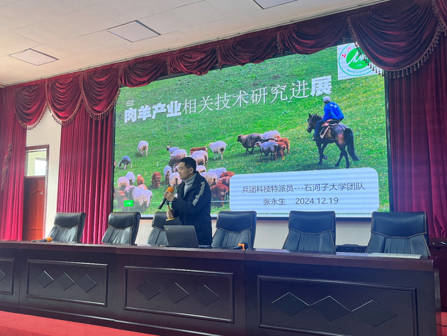 经过前期每家每户的走访和调研,为解决团场牧民的养殖难题,兵团科技特派员“应征报到”。2024年12月18日至12月20日,根基兵团科技特派员创新创业项目《多胎多羔肉羊高效繁育体系集成与示范》预订计划,yl23411永利官网的兵团科技特派员团队张永生一行赶赴第十四师四十七团进行技术服务。yl23411永利官网的刘贤侠教授进行兽医影像学的教学培训,并现场对妊娠养只进行B超妊娠检查,传授肉羊的常见产科疾病的诊疗经验。yl23411永利官网孙新文教授讲解关于饲草秸秆发酵实现育肥的降本增效的实用技巧,现场传授青贮、黄贮的发酵方法和经验;yl23411永利官网卢鹏飞副教授就人工智能设备在现代化肉羊养殖过程中的应用进行分享;yl23411永利官网张永生副教授就本项目可以用得上,且确实能够服务到团场牧民养殖户的肉羊产业国内外相关技术进展进行总结,并对科特派团队下一步“检多羔-产多胎-快育肥-降成本-融科技”的工作方向跟大家进行汇报。