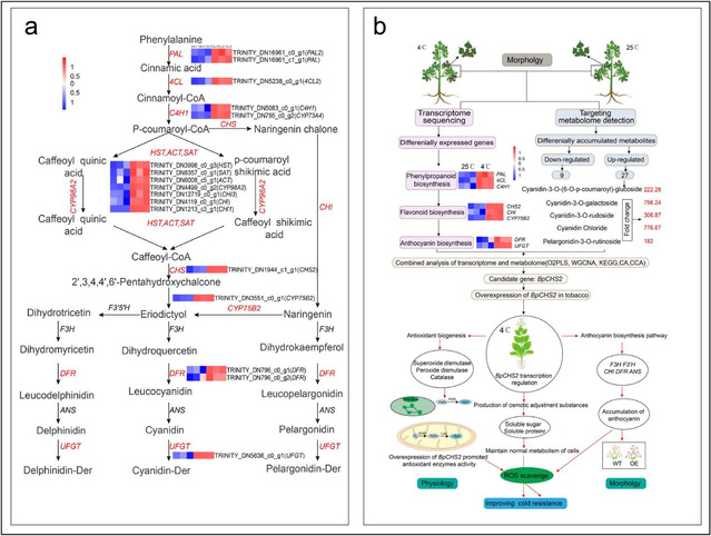 近日,公司马春晖、张凡凡教授联合生命科学公司郭新勇副教授在构树新品种研发方面取得重要进展,研究结果以“Chalcone synthase 2 (BpCHS2), a structural gene, was activated by low temperature to promote anthocyanin synthesis in Broussonetia papyrifera to improve its cold tolerance”(低温激活查尔酮合成酶2促进花青素合成以增强构树耐寒性)在经典植物学杂志Plant physiology and biochemistry上发表(中科院二区,TOP期刊),论文第一作者为本院付东青博士,通讯作者马春晖、张凡凡、郭新勇。