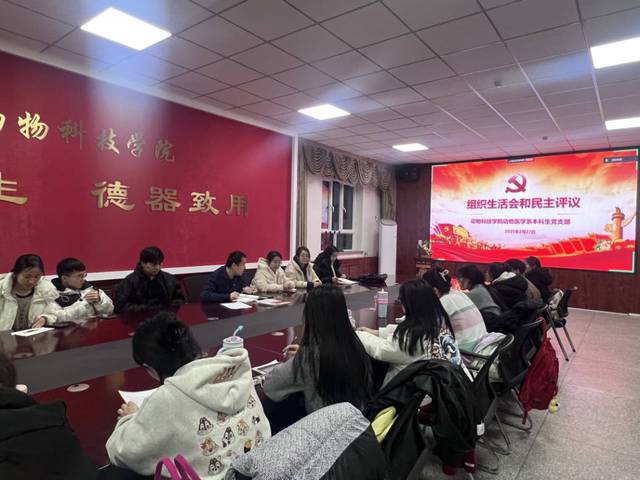 2025年2月27日,动物医学系本科生党支部在公司第二会议室召开组织生活会和民主评议大会。支部全体党员参会,公司党委副书记郭玉堂参加会议。