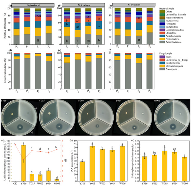 本研究基于4年的定位试验,研究了长期施用氮肥和磷肥对紫花苜蓿根际土壤理化性质及微生物群落结构的影响。同时我们在紫花苜蓿田根际土壤筛选出5株根际促生菌并进行盆栽促生效应验证。研究表明氮肥和磷肥显著改变了土壤理化性质和细菌群落结构,但对土壤微生物多样性没有显著影响。土壤细菌比真菌对氮肥和磷肥更敏感。应用根际促生菌可以显着增加苜蓿的地上生物量。研究结果有助于理解氮磷肥处理下土壤微生物群落的变化规律,为旱地农业生态系统的可持续发展提供理论支持。