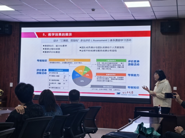培训中,刘良波教授结合多年教学竞赛评委经验,从评分规则切入,围绕“教学创新报告”“教学设计”“教学大纲”等核心板块展开深入剖析。他通过具体案例,生动阐释了评委视角下的评分要点,指导教师如何精准把握教学设计重点,理清备赛思路。申红教授则聚焦教学设计全流程,从内容选择和展示、教学方法创新、教学活动设计、课程思政融入到教学效果呈现,结合自身获奖作品逐一拆解,为参训教师提供了可借鉴、可落地的实战策略。