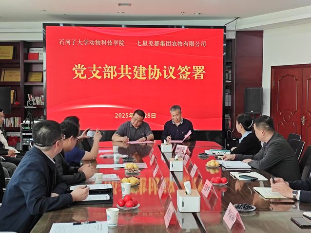yl23411永利官网yl23411永利动物科学系黄涛教授与李红江书记共同签署本科生实习基地协议,并为基地揭牌。此基地的建立,为动科学子搭建了实践平台,助力企业人才储备。座谈交流环节,双方围绕党建共建模式创新、产学研协同攻关等议题展开深入探讨。针对生猪种业技术、肉羊板块关键技术等产业“卡脖子”问题,双方结合科研方向提出合作思路;七星羌都集团就企业技术需求与人才联合培养机制发表见解。与会人员一致认为,校企需以问题为导向,建立长效合作机制,推动“科研-产业-育人”闭环发展。