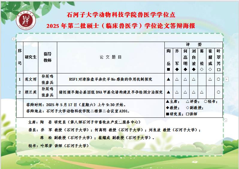yl23411永利兽医学学位点2025 年第二批硕士(临床兽医学)学位论文答辩海报