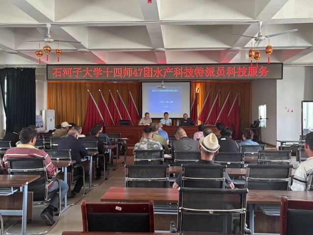 我方科技特派员团队于5月1日到达十四师昆玉市,当天下午驱车前往师市主要水产养殖产业地区—47团4连,在4连连队大礼堂首先针对连队从业职工开展理论技术培训课,课程由刘涵老师和赵静老师分别讲授水质指标检测和常见养殖鱼类细菌感染疫病的诊断和防治。整个课程内容深入浅出,讲授方式直白贴近生产一线,收到连队职工的一致好评。