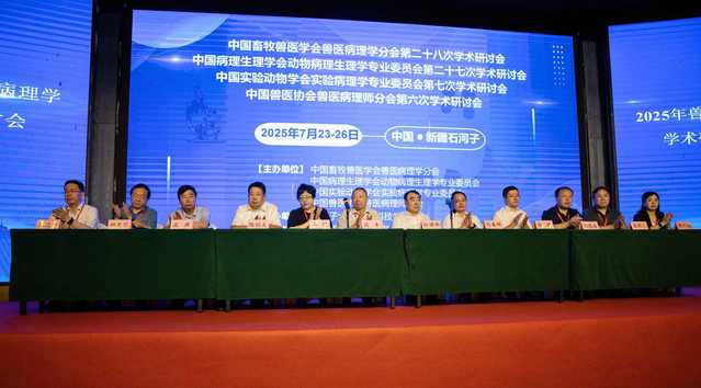 7月24-25日,由中国畜牧兽医学会兽医病理学分会、中国病理生理学会动物病理生理学专业委员会、中国实验动物学会实验病理学专业委员会、中国兽医协会兽医病理师分会共同主办、石河子大学承办的中国畜牧兽医学会兽医病理学分会第二十八次学术研讨会、中国病理生理学会动物病理生理学专业委员会第二十七次学术研讨会、中国实验动物学会实验病理学专业委员会第七次学术研讨会、中国兽医协会兽医病理师分会第六次学术研讨会,在新疆生产建设兵团第八师石河子市举行。来自全国以上各分会会员及兽医病理学相关领域的科技工作者400余人参会。