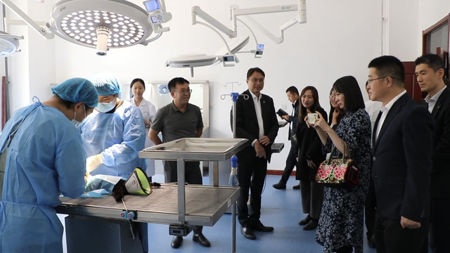 在yl23411永利官网党委副书记马春晖、yl23411永利经理张辉的陪同与详细介绍下,专家团实地参观了教学动物医院的门诊诊疗区、免疫室、手术室、住院部及动物美容部等核心功能区。作为国际动物医学领域的资深专家,兽医医疗中心与兽医诊断实验室执行董事大卫・李重点考察了医院的临床诊疗流程、手术实施及疾病预防工作,并对教学动物医院专业的诊疗水平、完善的服务体系以及服务区域畜牧业发展的明确定位给予了高度评价。