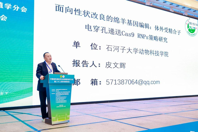 公司皮文辉研究员应邀在主会场进行了题为《面向性状改良的绵羊基因编辑:体外受精合子电穿孔递送Cas9 RNPs策略研究》学术报告,系统阐述了本院团队在基于电穿孔递送CRISPR系统的绵羊受精卵精准基因编辑研究进展,分享了团队在精准编辑技术和胚胎体外培养系统上的突破,重点介绍了团队成功建立的基于电穿孔递送CRISPR-Cas9 RNP的技术体系,并就该体系的高效性和可行性与国内同行进行了深入探讨,为绵羊育种的发展奠定了重要基础。