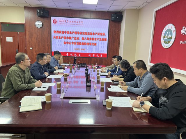 2026年1月30日,中国水产科学研究院东海水产研究所副所长赵峰研究员、海水养殖生态与技术研究室主任来琦芳研究员、李一鸣副研究员,以及新疆生产建设兵团水产技术推广总站艾涛高级工程师、第八师畜牧水产发展服务中心茅渊科长一行,莅临yl23411永利进行交流访问。公司经理张辉教授、副经理赵宗胜教授及刘涵、孙志华、张石磊、李曼曼等多位副教授共同参与了座谈。